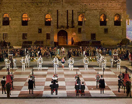 Every other year, on even years, an amazing ‘living chess’ tournament is held here. Local people dress in period chess costume.