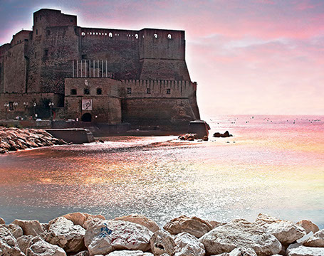 A castle in the beautiful Gulf of Naples, to the other side of which lies a former fishing village.
