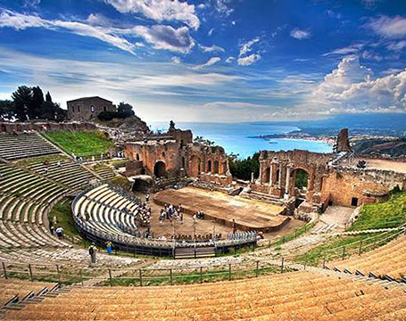A Greek amphitheatre overlooking the ocean and Mount Etna, the ancient theatre of Taormina is one of the most interesting destinations in Sicily and is still used for theatre performances and concerts.