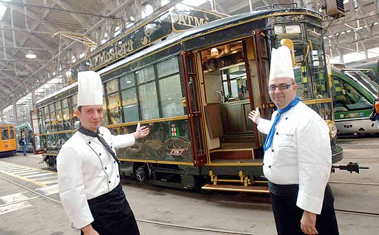 The unique charm of a having lunch or dinner on board of a vintage Milanese tram.